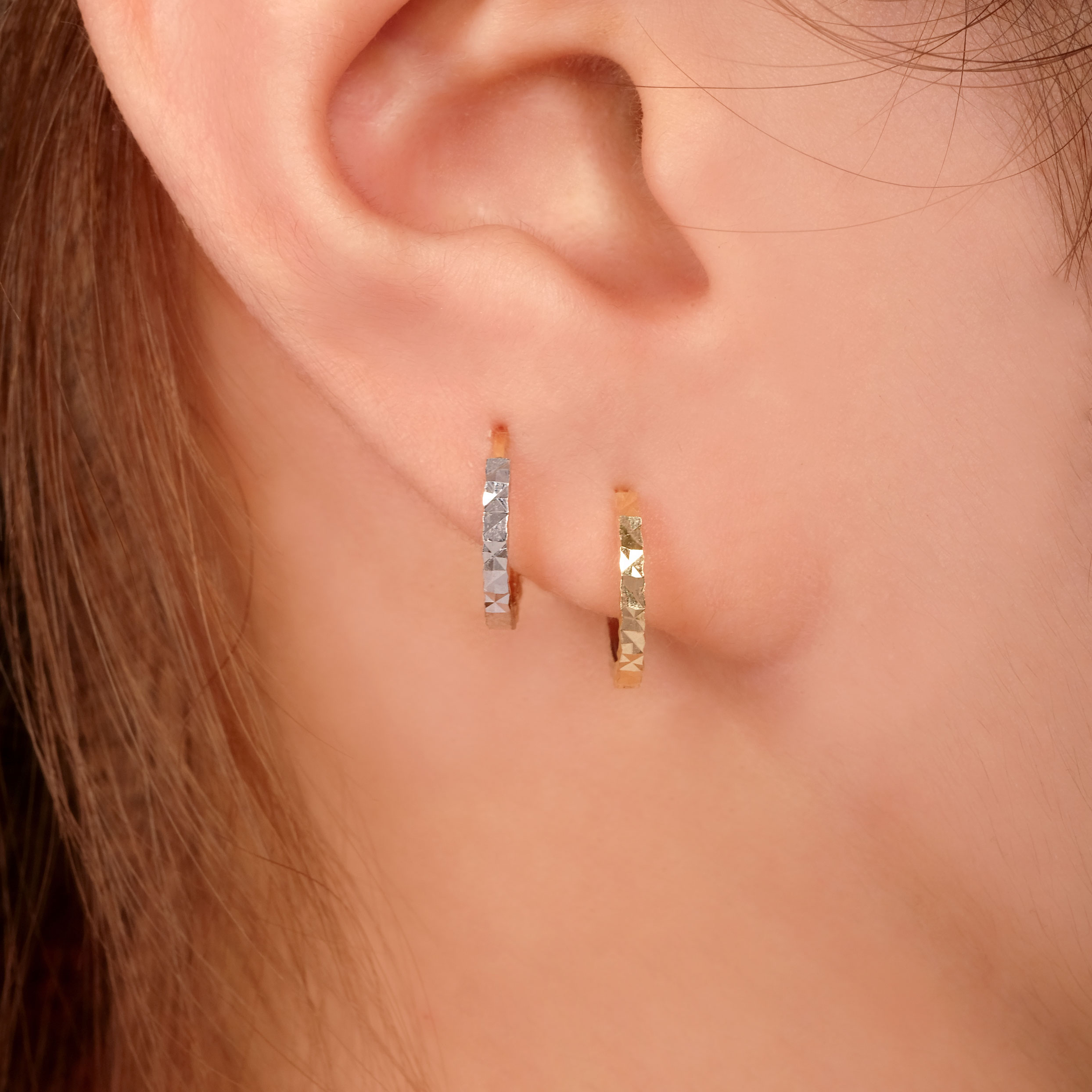 Two-tone textured mini hoop earrings
