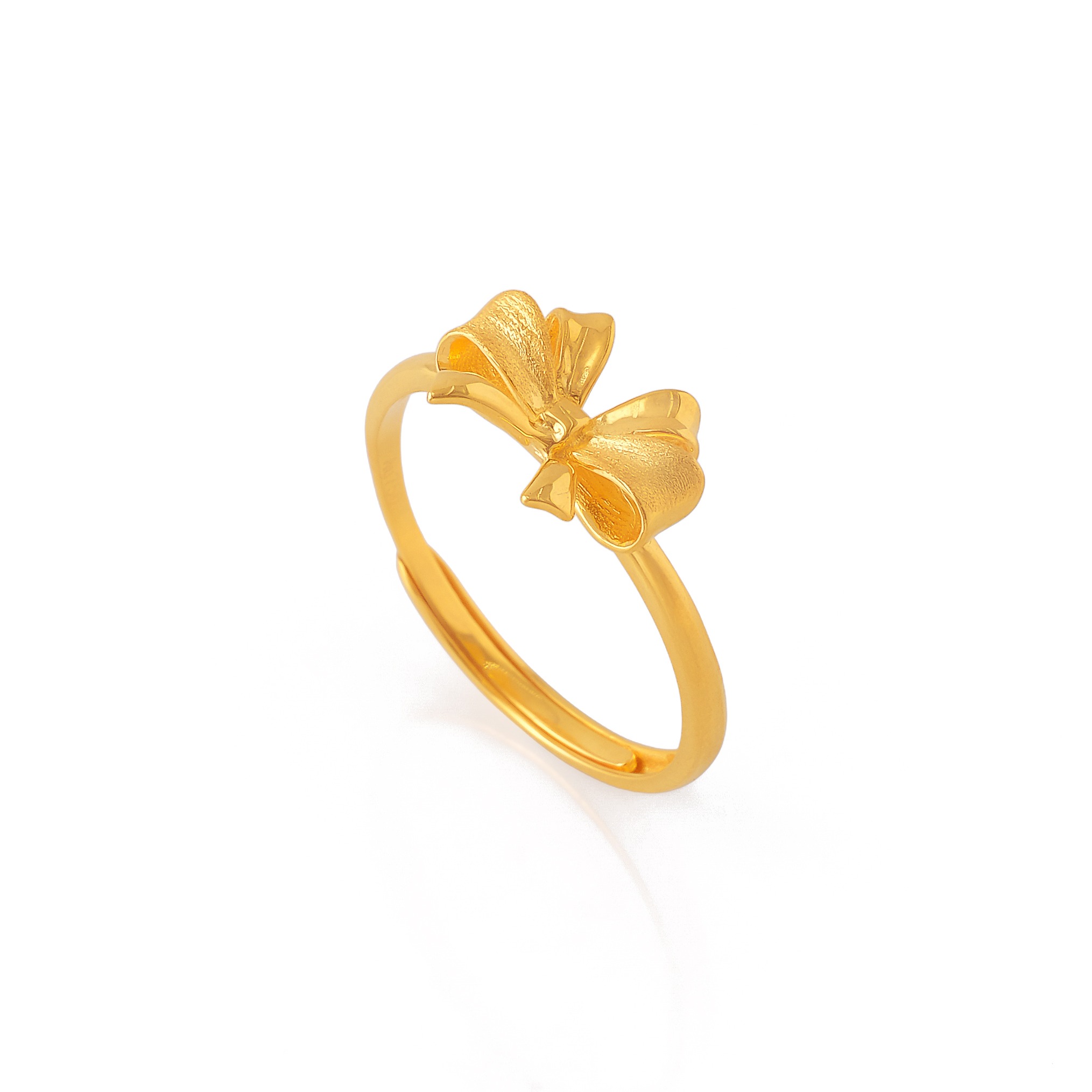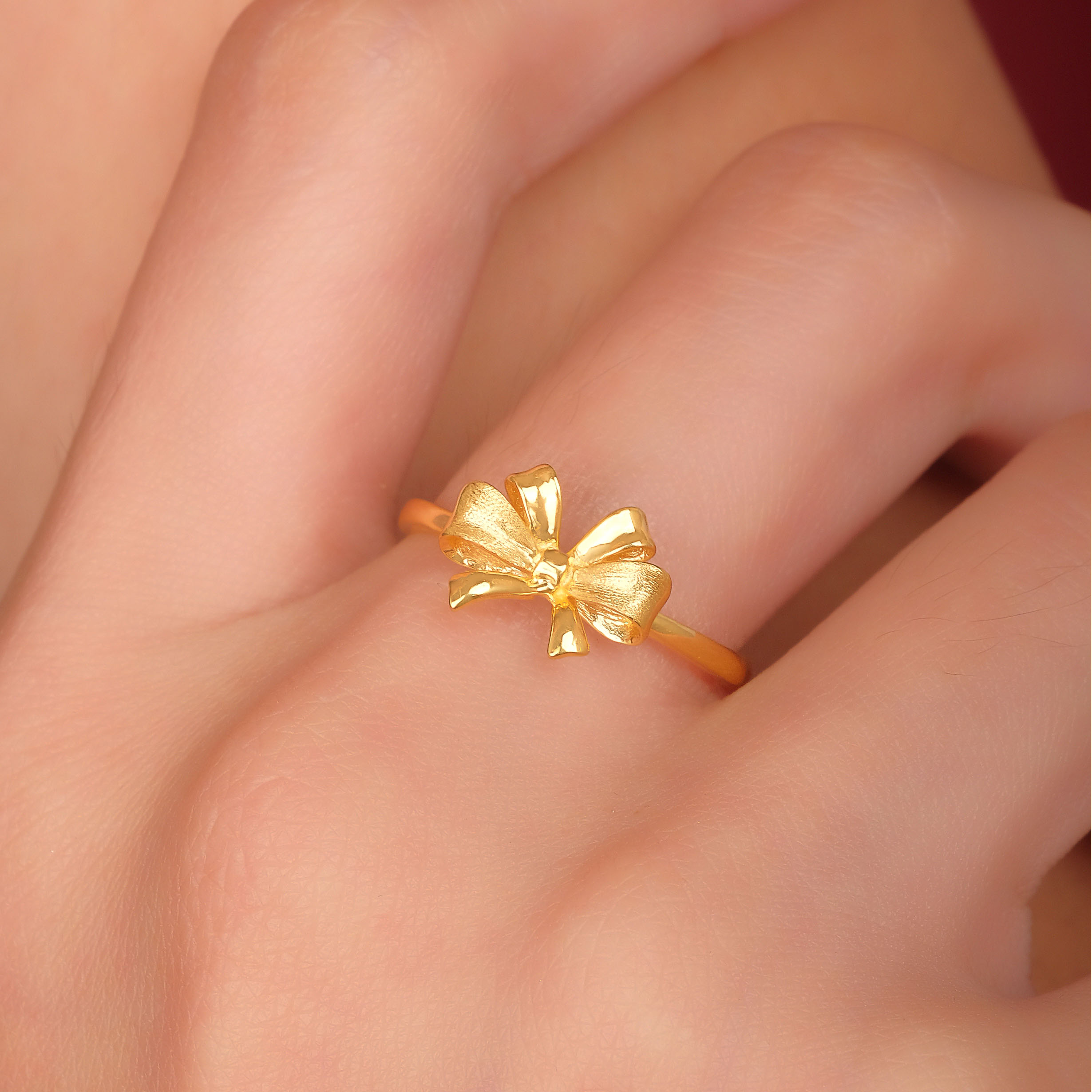 18 karat Chinese gold ribbon ring with textured band by Oro China Jewelry.