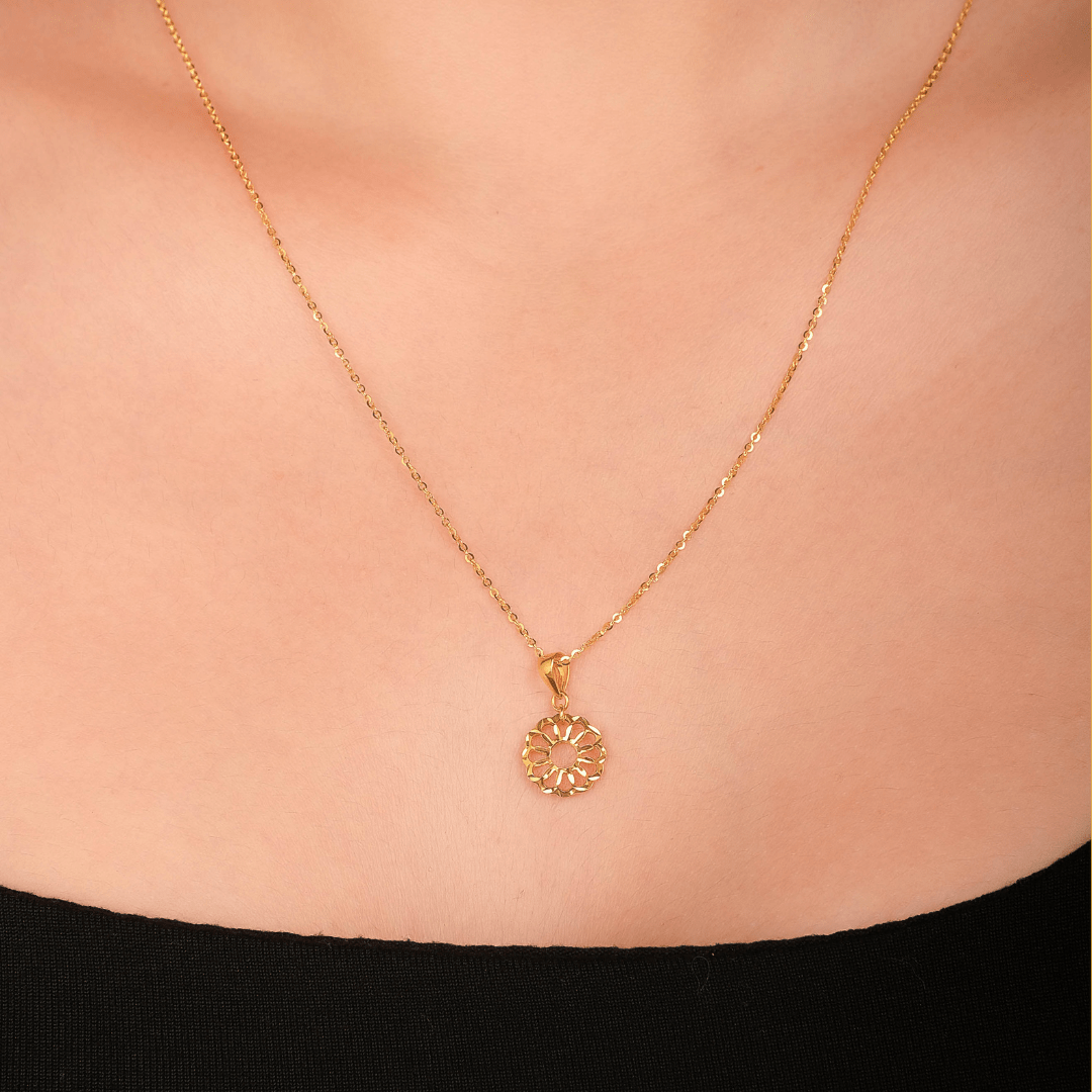 18 karat Chinese gold textured flower necklace by Oro China Jewelry