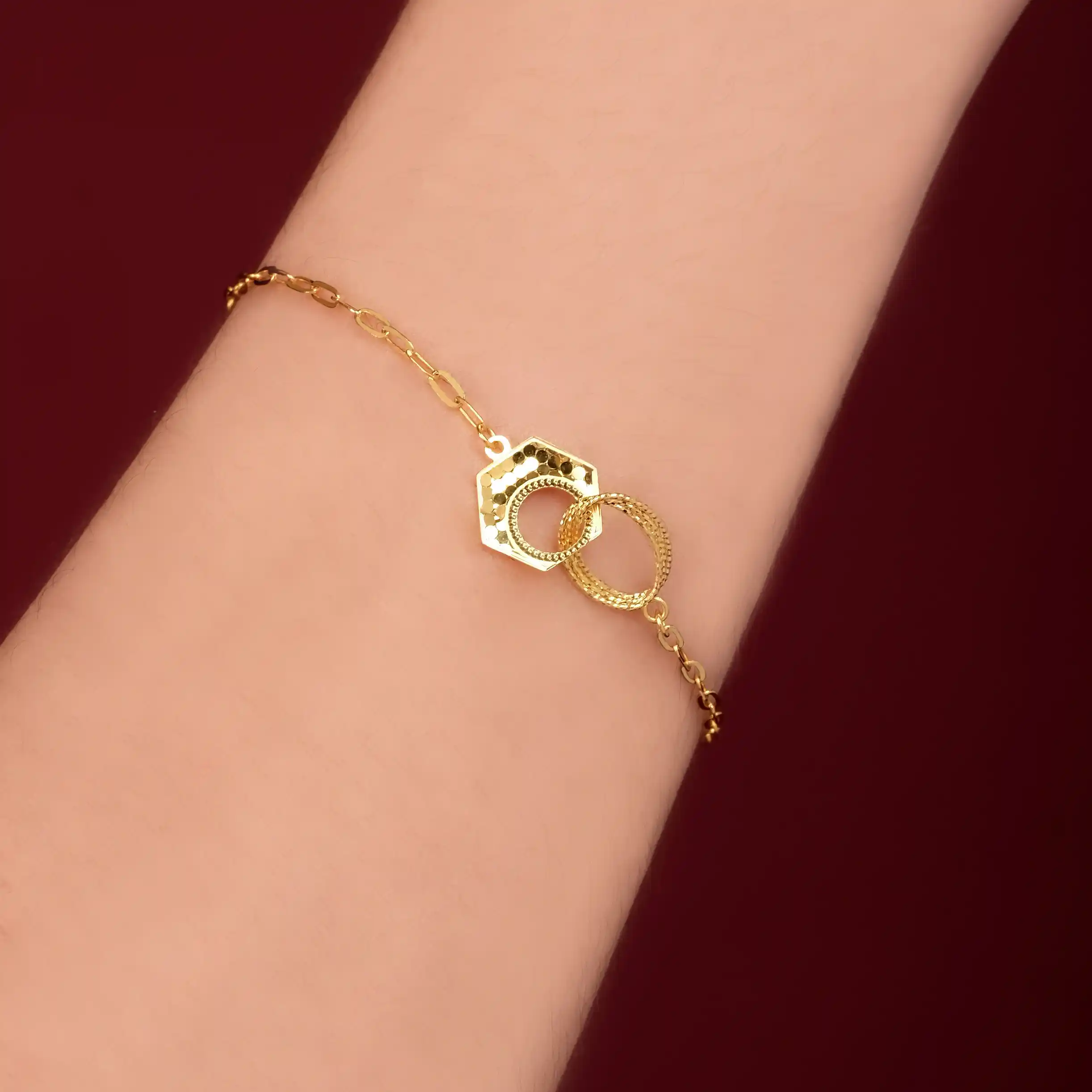 18 karat Chinese gold bracelet with interlocking geometric motif by Oro China Jewelry.