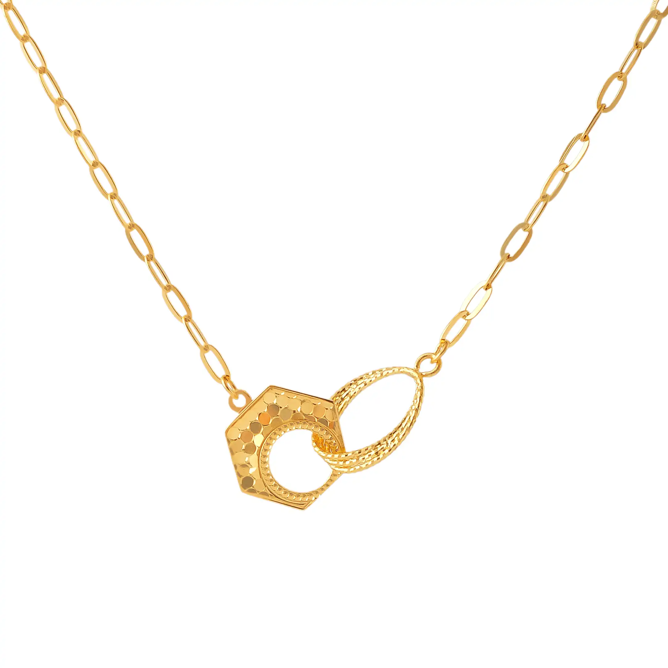 18 karat Chinese gold necklace with interlocking geometric motif by Oro China Jewelry.