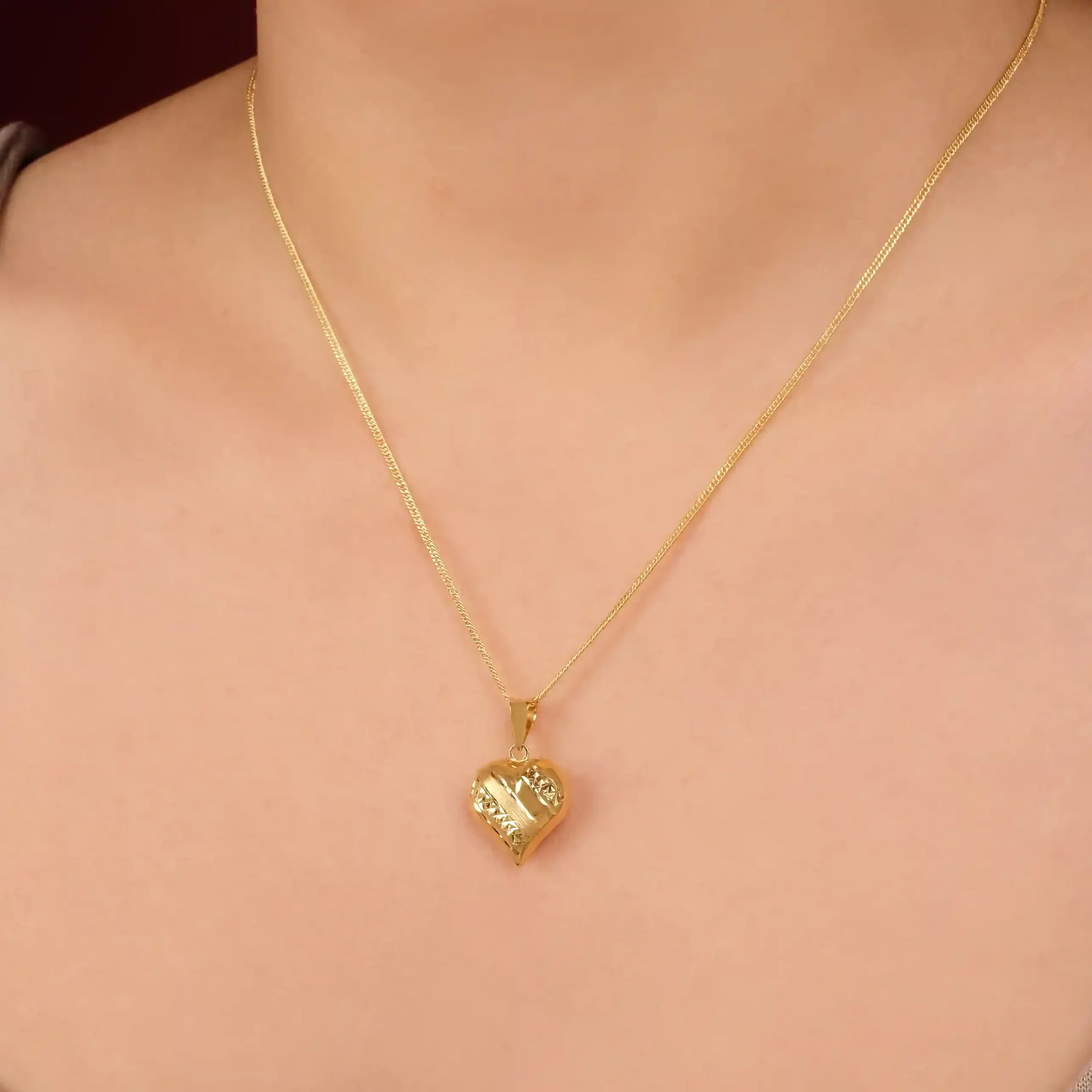 18 karat Italian gold heart pendant necklace with textured detailing by Oro China Jewelry.