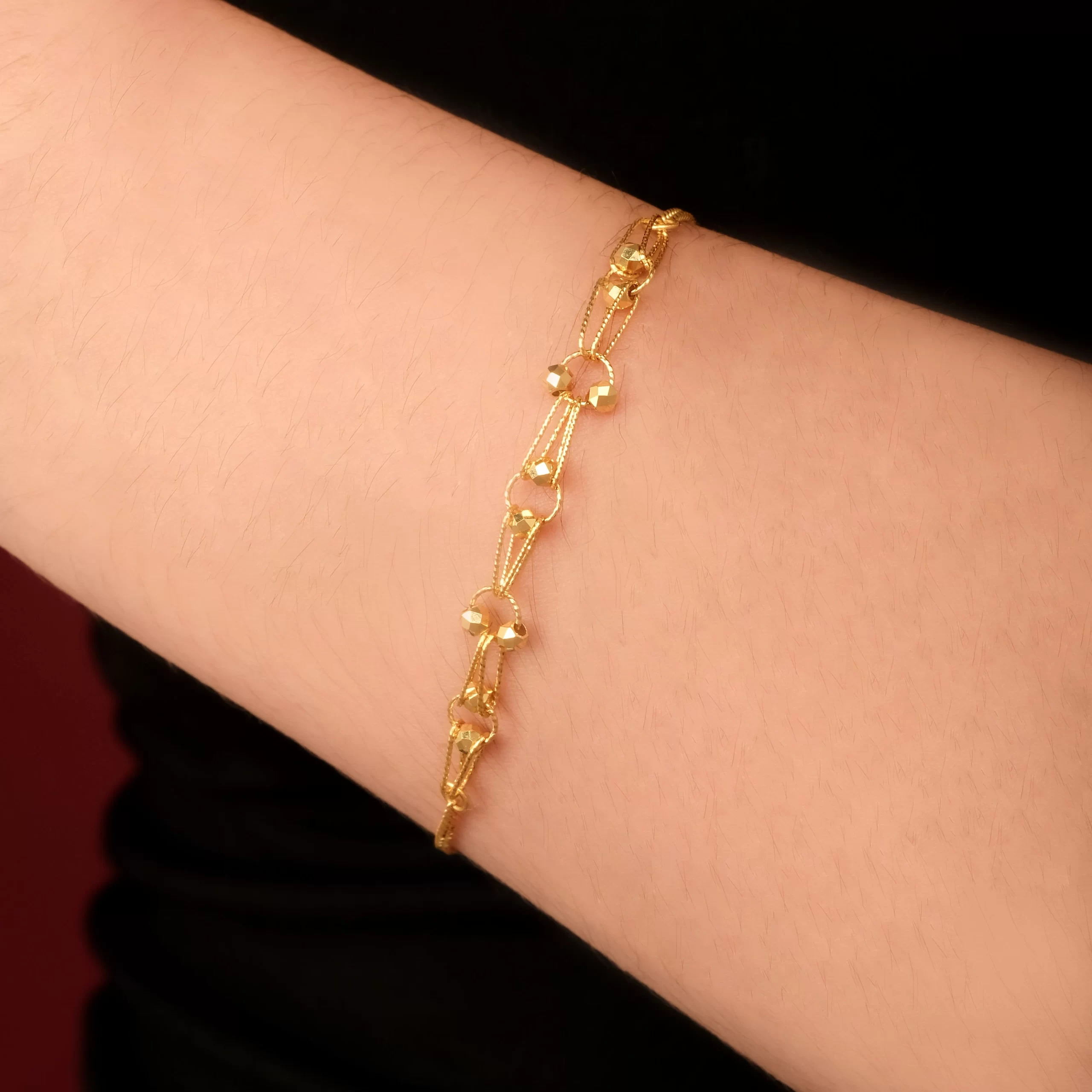 18 karat Chinese gold double-strand chain bracelet connected by polished gold bead stations by Oro China Jewelry.