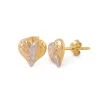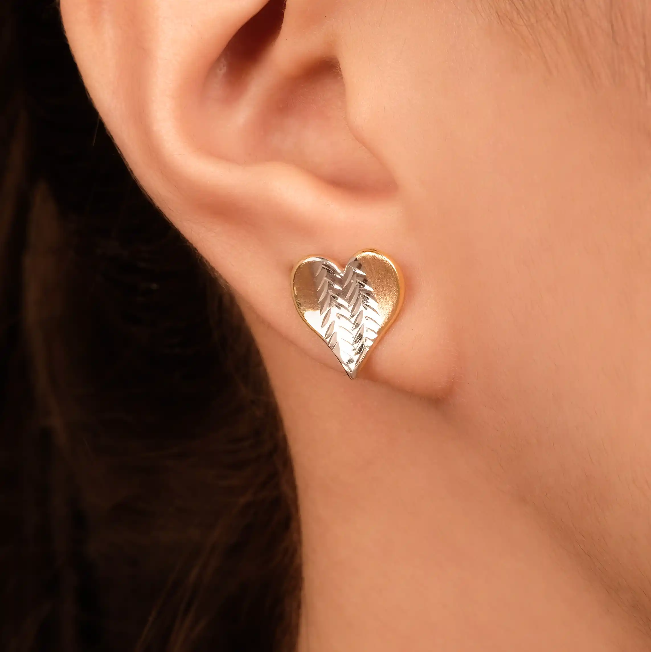 18 karat Italian gold heart stud earrings with etched chevron pattern by Oro China Jewelry.