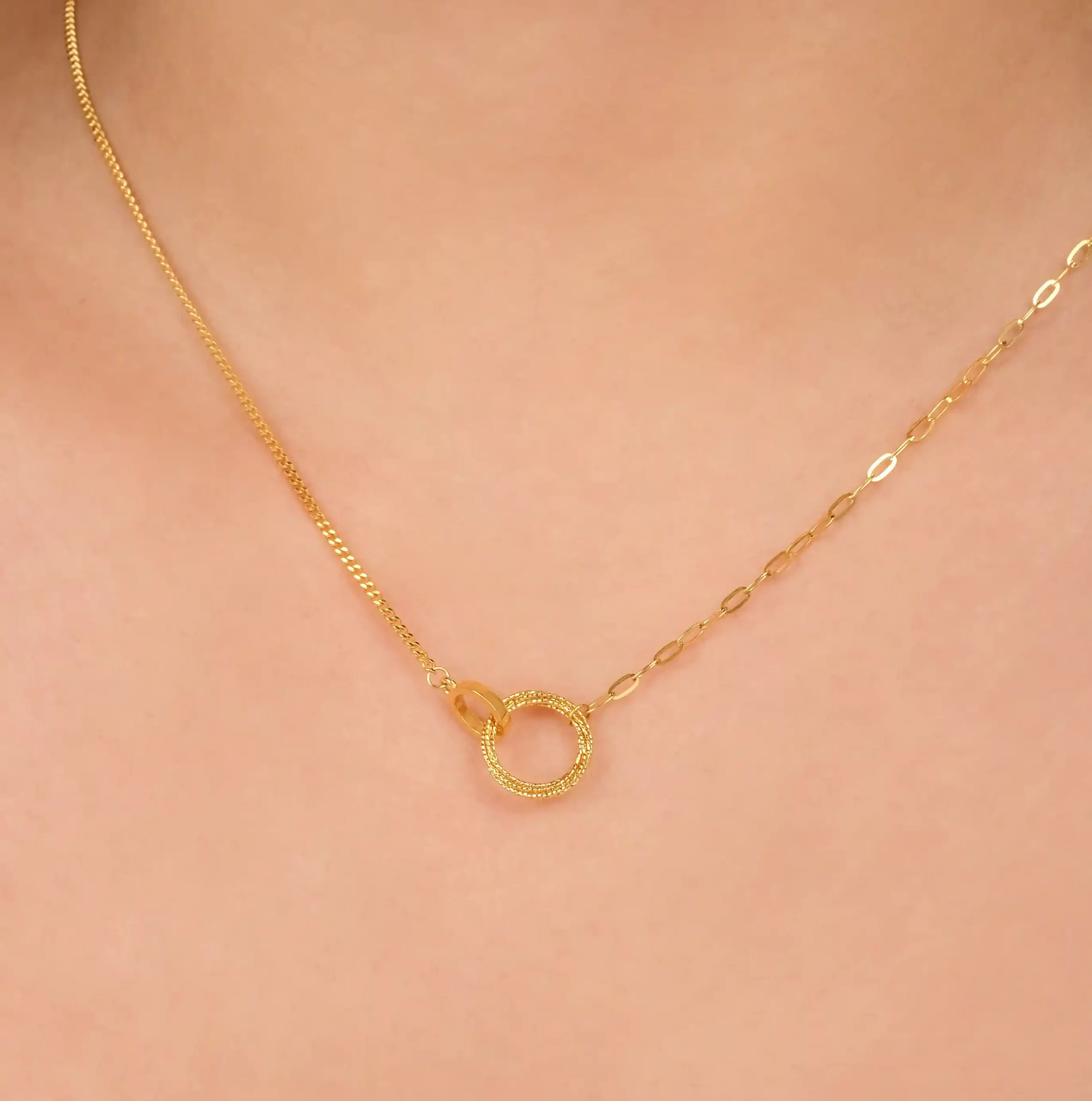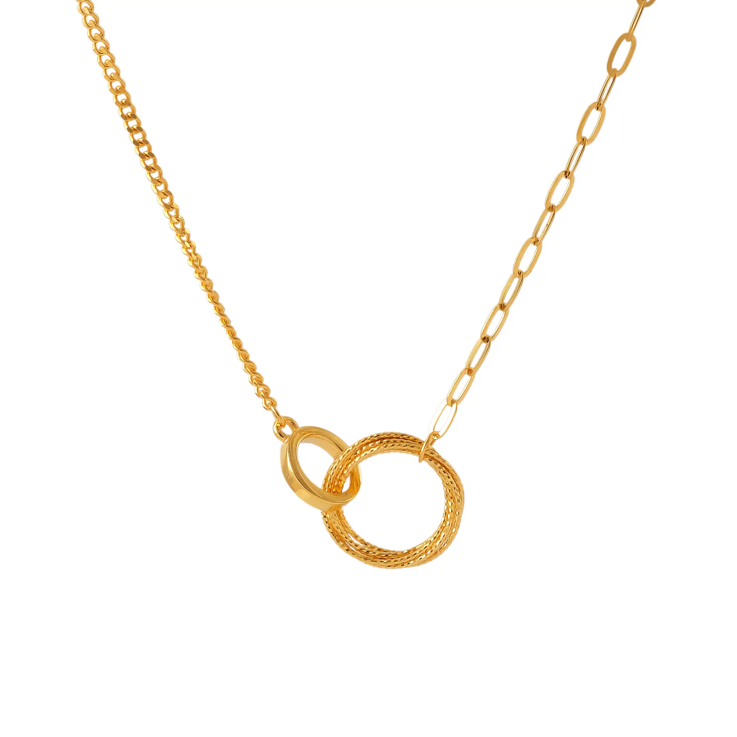 18 karat Chinese gold necklace with circular link centerpiece by Oro China Jewelry.