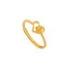18 karat Chinese gold ring featuring a bypass design with two polished heart motifs and a braided band by Oro China Jewelry.