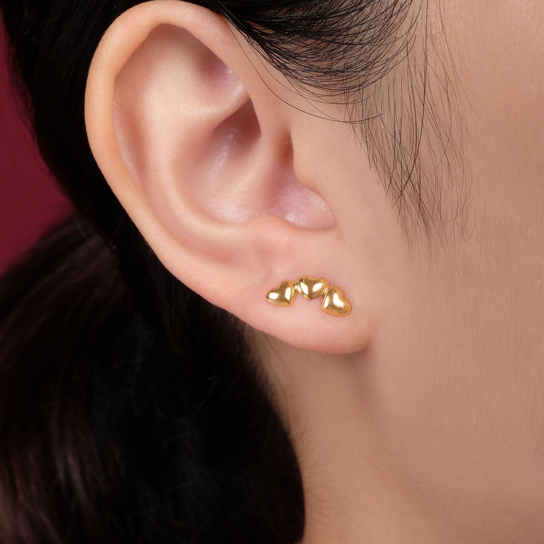 Triple heart stud earrings