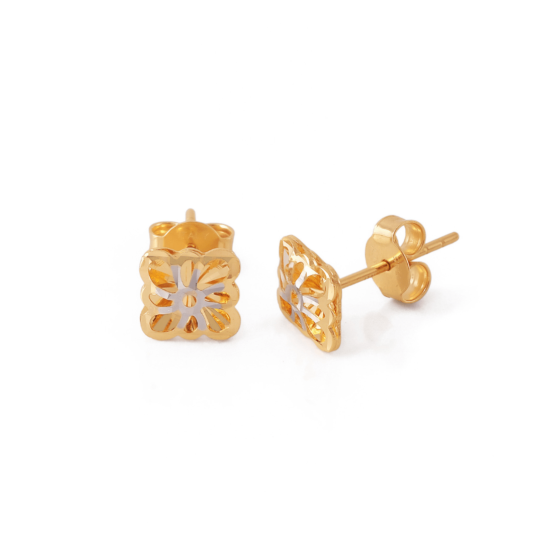 14 karat Italian gold textured geometric stud earrings by Oro China Jewelry