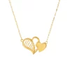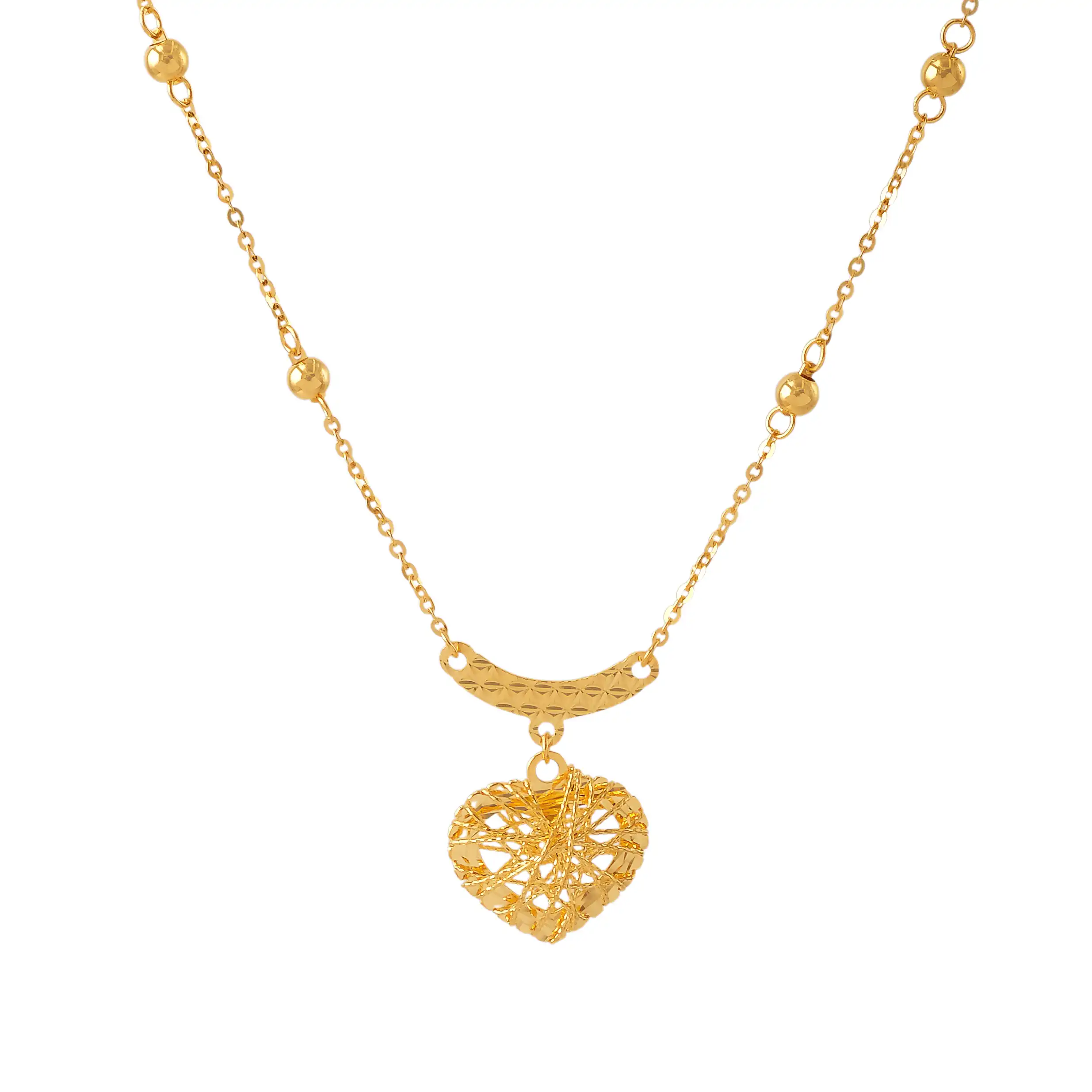 18 karat Chinese gold curve bar necklace featuring a dangling wire-mesh heart by Oro China Jewelry.