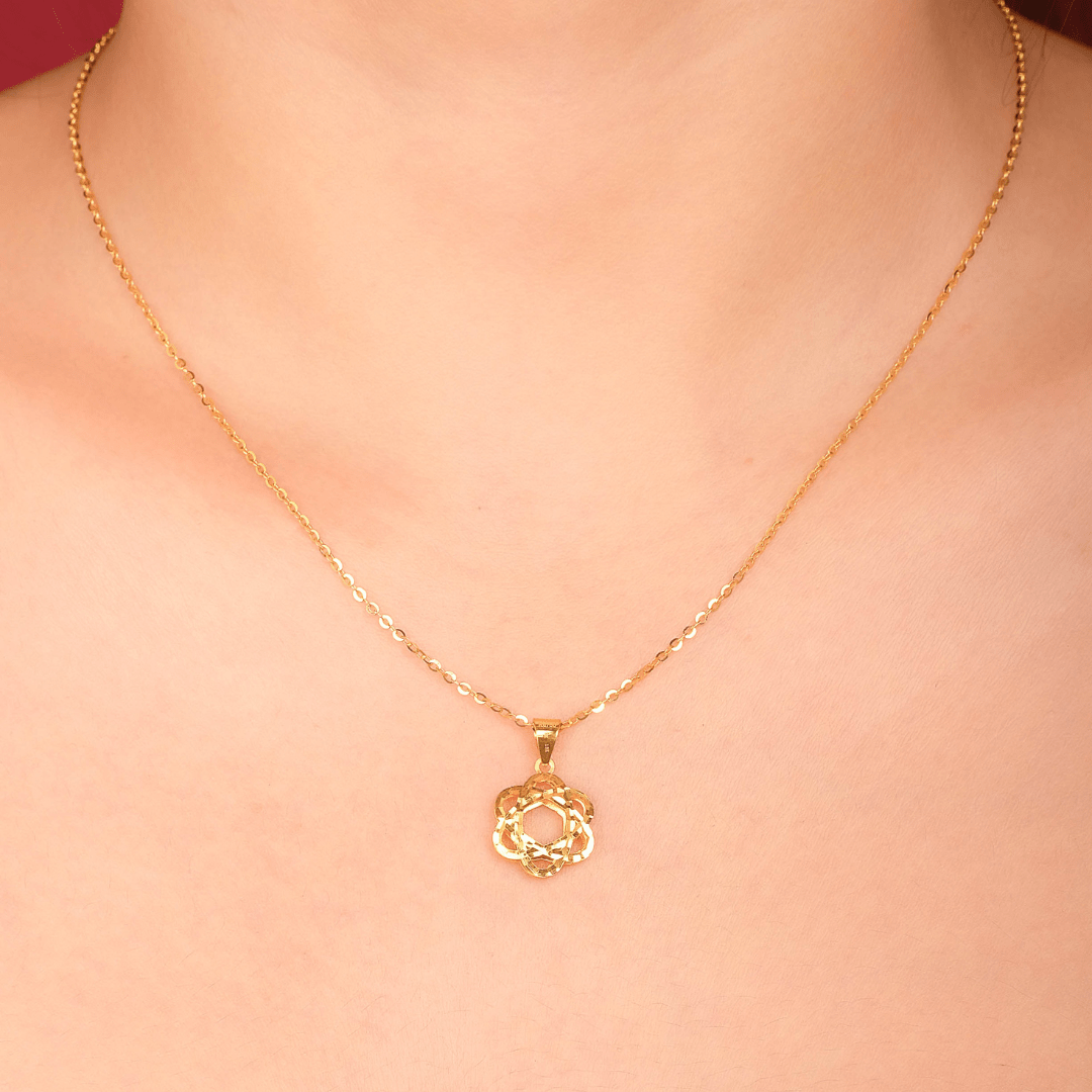18 karat Chinese gold textured flower necklace by Oro China Jewelry