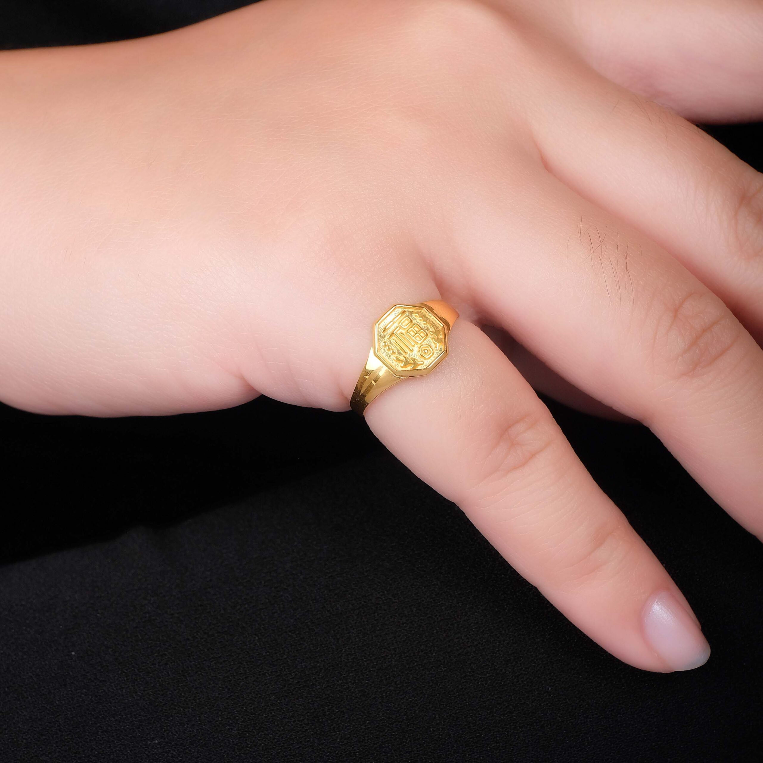 Octagon ring featuring a symbol known to bring fortune and prosperity.