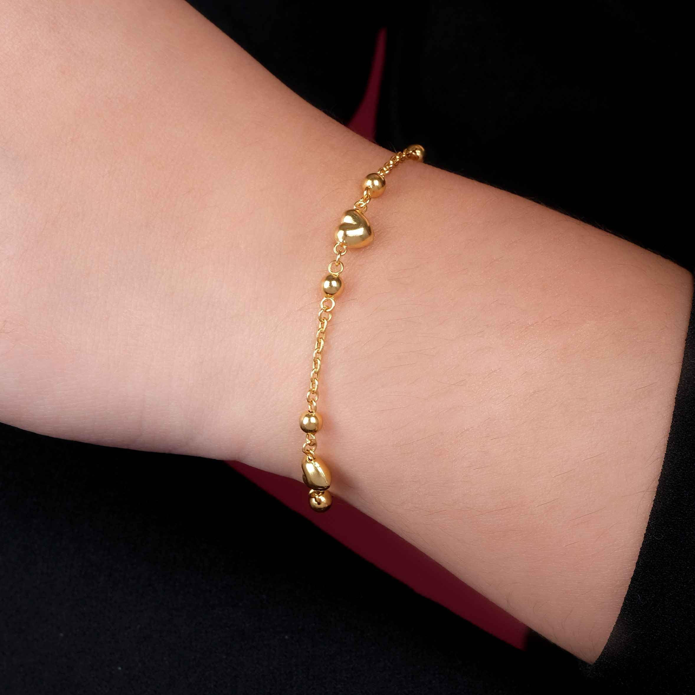 Chain bracelet with heart and ball bead accents