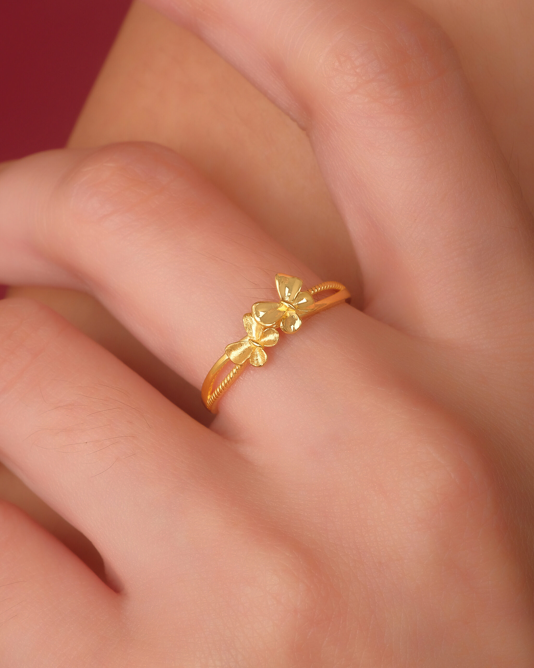 18 karat Chinese gold butterfly ring with textured band by Oro China Jewelry