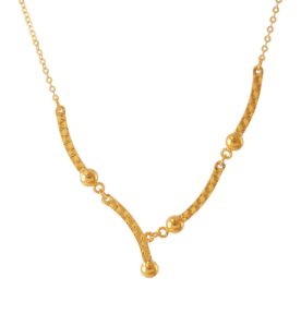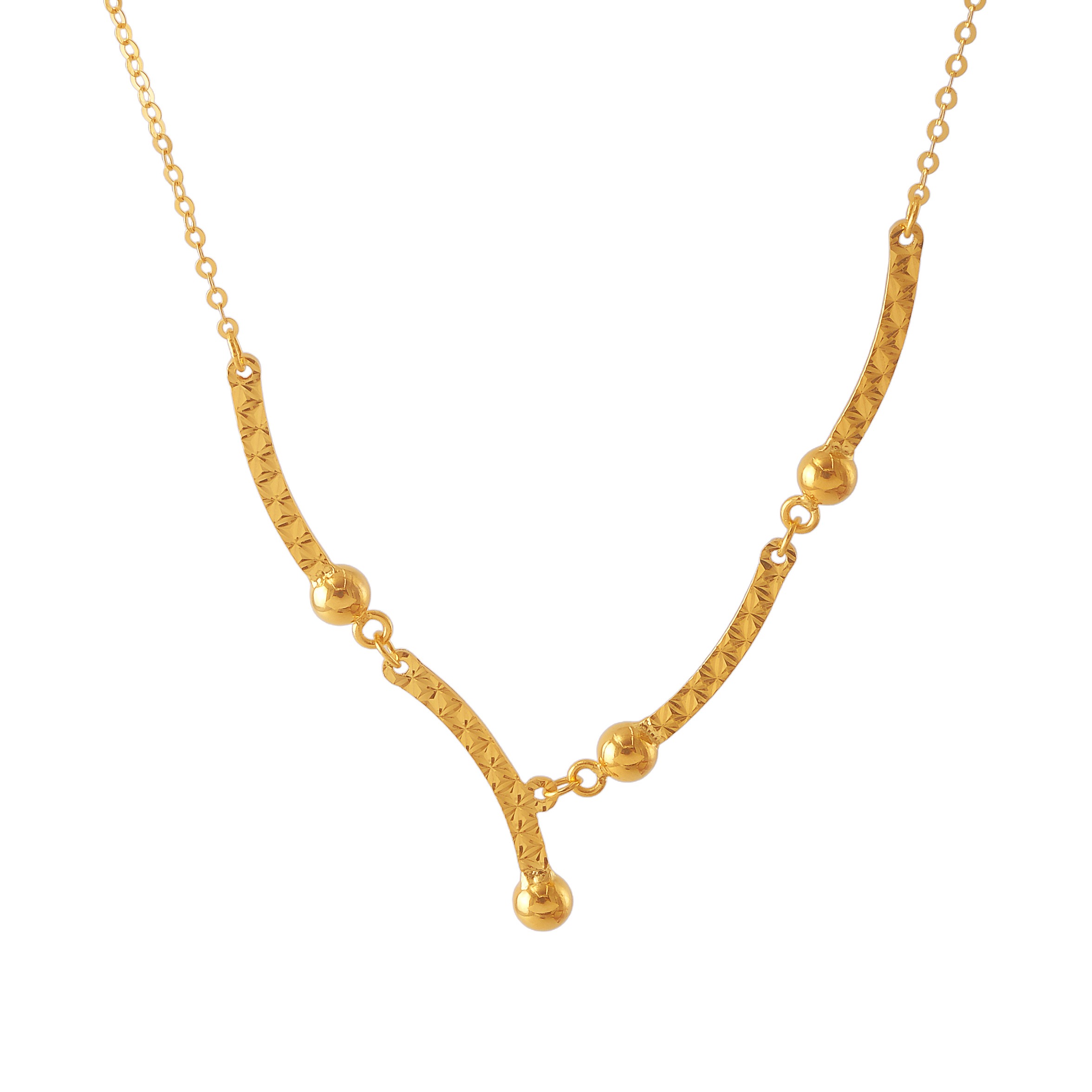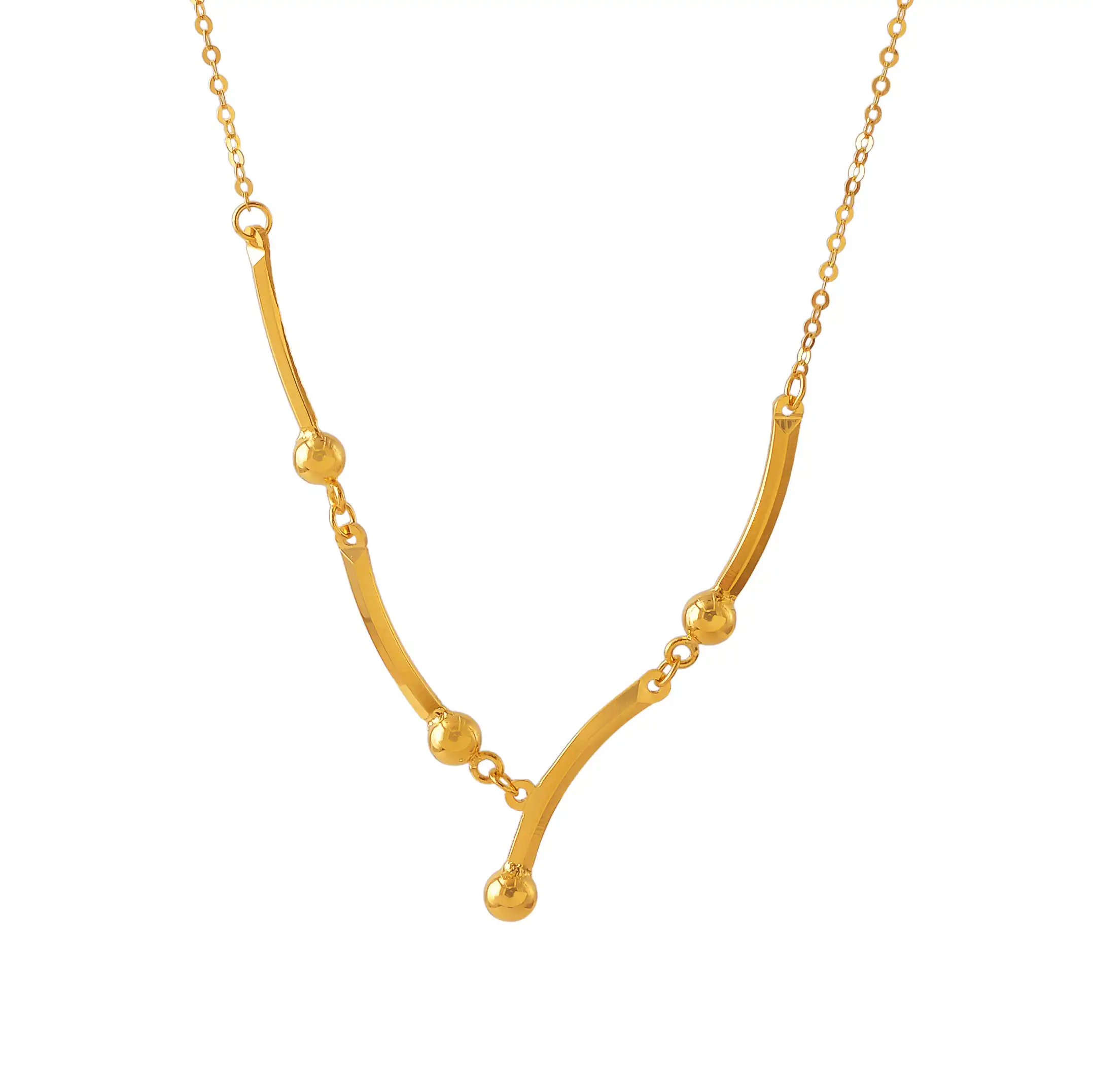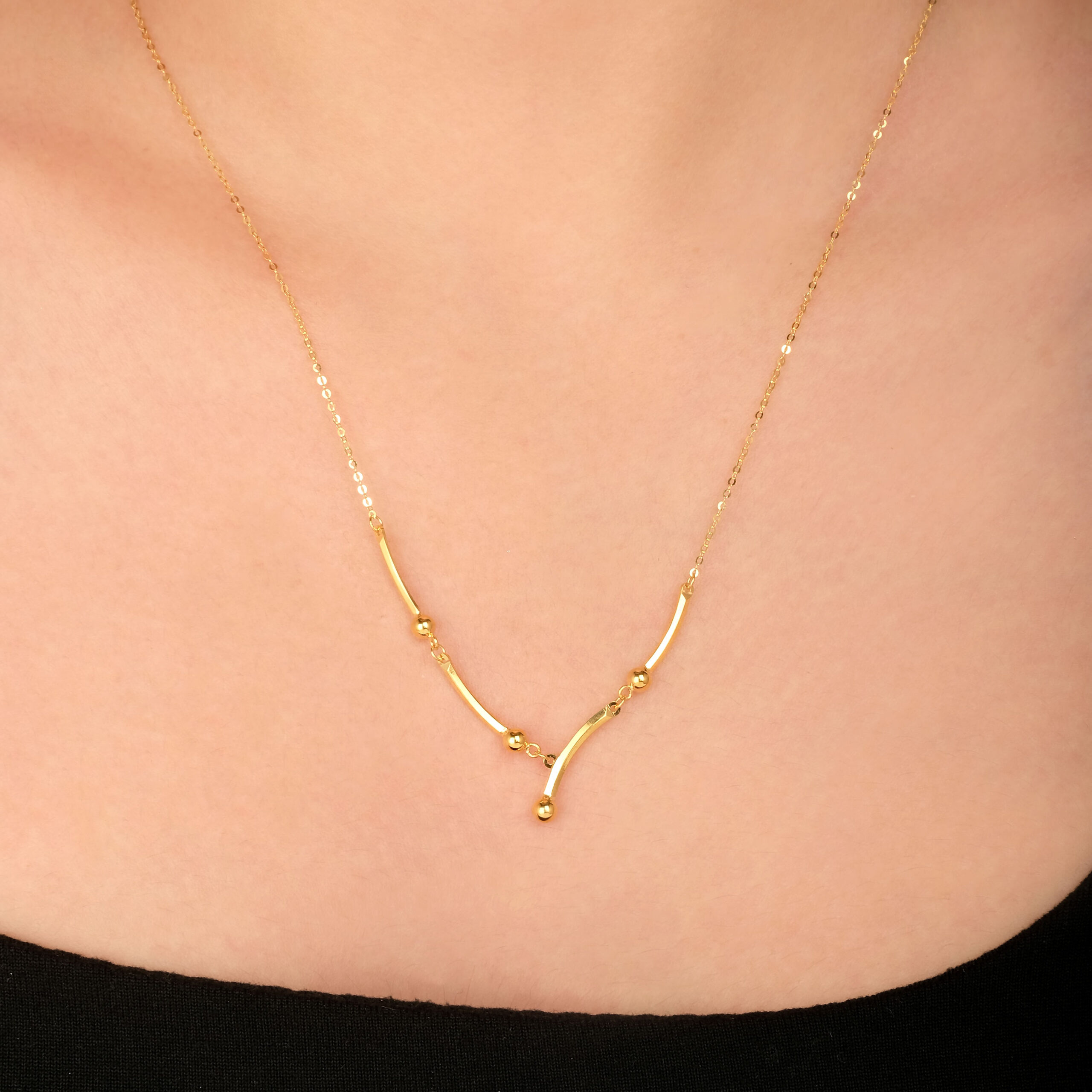 18 karat Chinese gold asymmetric bar necklace with bead accents by Oro China Jewelry.
