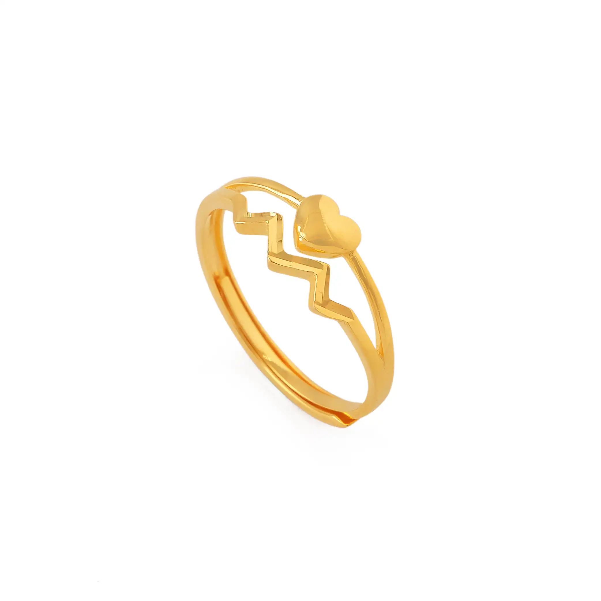 18 karat Chinese gold heart ring with zigzag band detail by Oro China Jewelry.