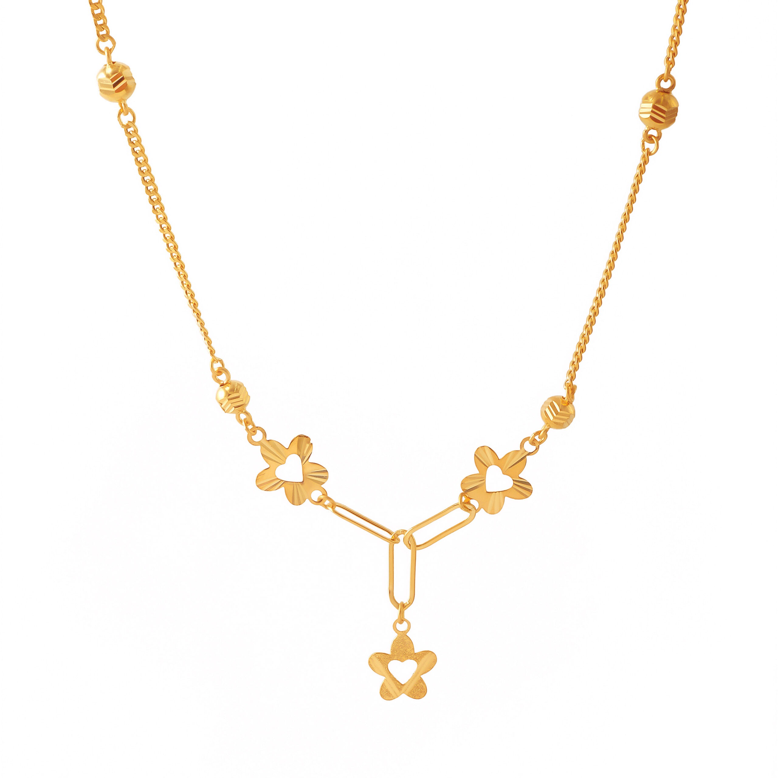 Chain necklace with ball and flower accent