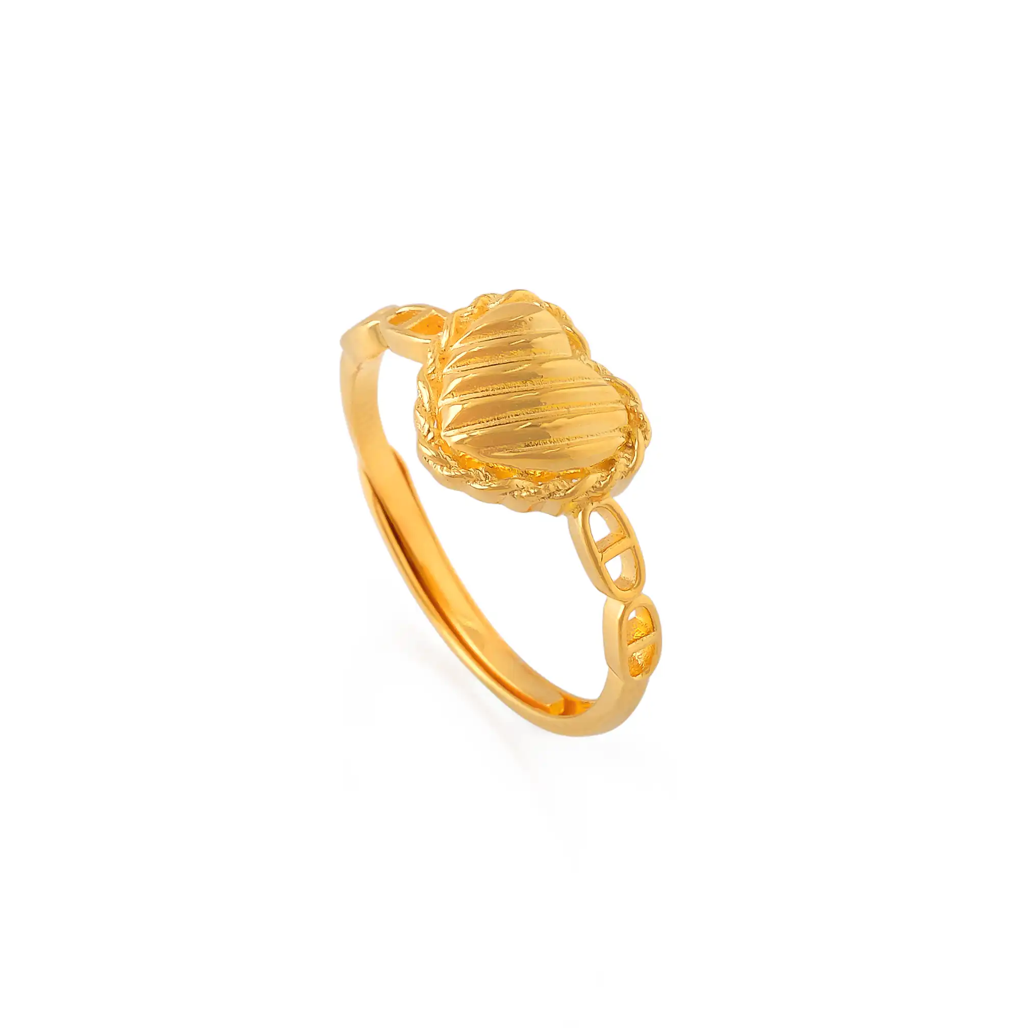 18 karat Chinese gold ring with a large, textured puff heart center and a chain-link style band by Oro China Jewelry.