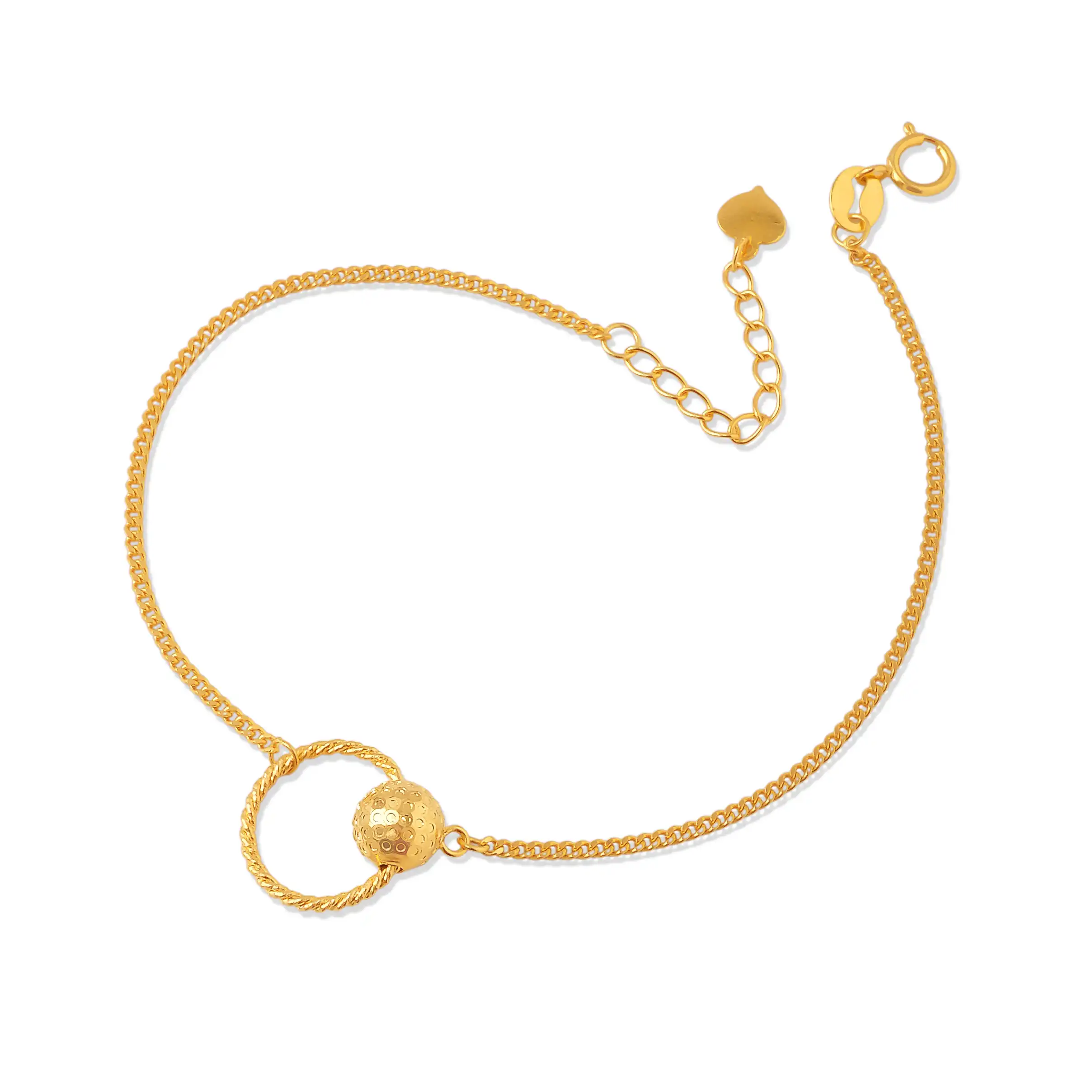 18 karat Chinese gold bracelet with textured sphere charm by Oro China Jewelry.