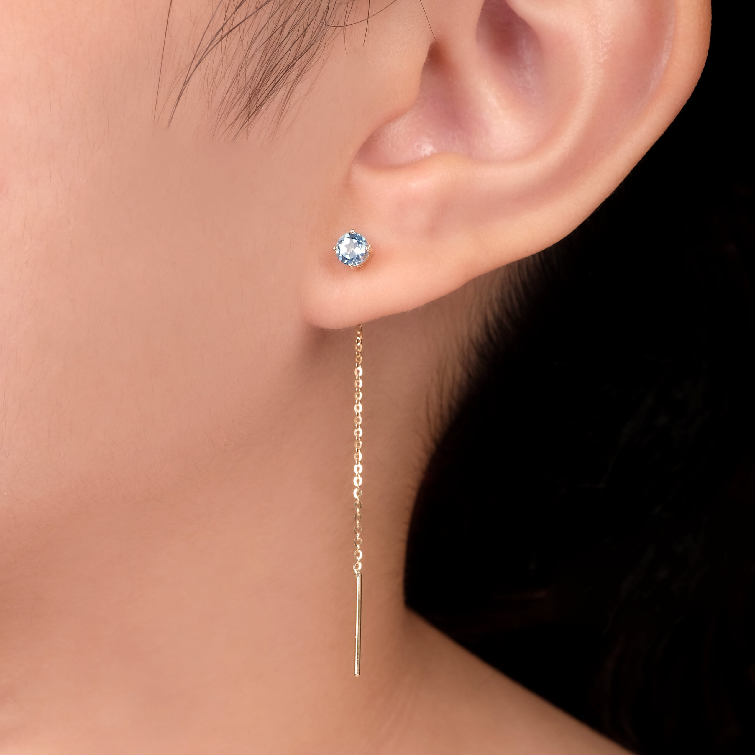 Cubic Zirconia blue topaz thread through drop earrings