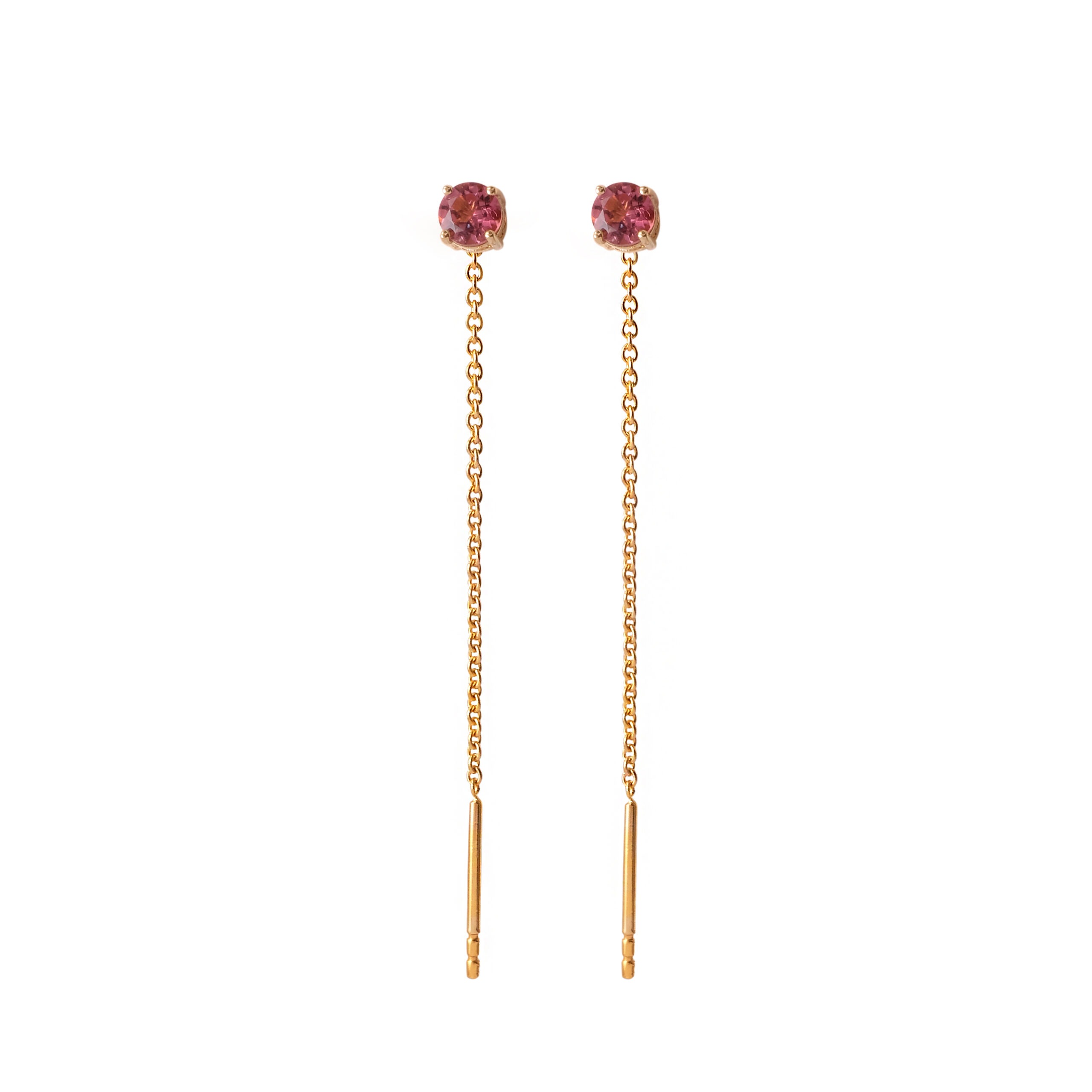 Cubic Zirconia pink tourmaline thread through drop earrings