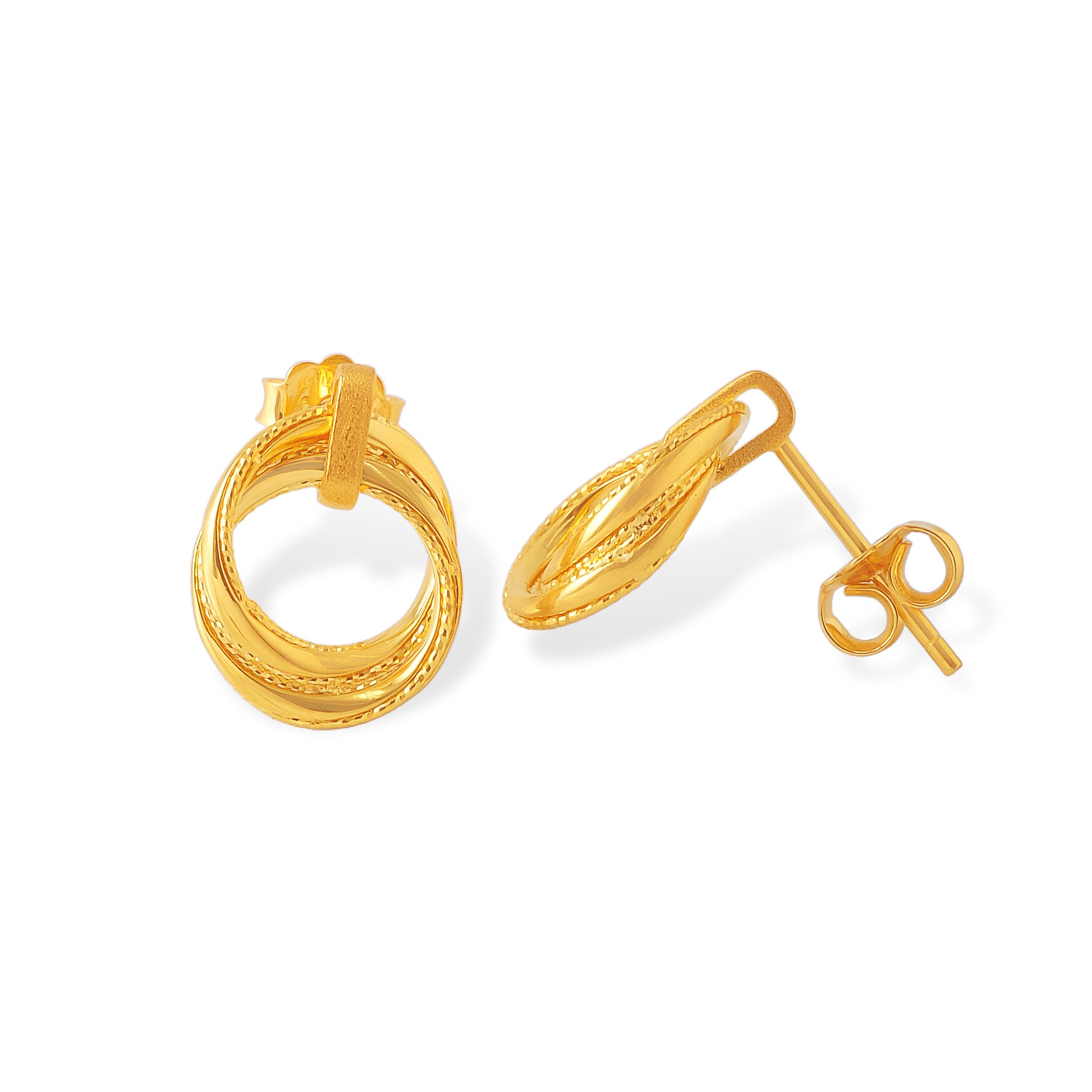 18 karat Chinese gold classic layered hoop stud earrings by Oro China Jewelry.