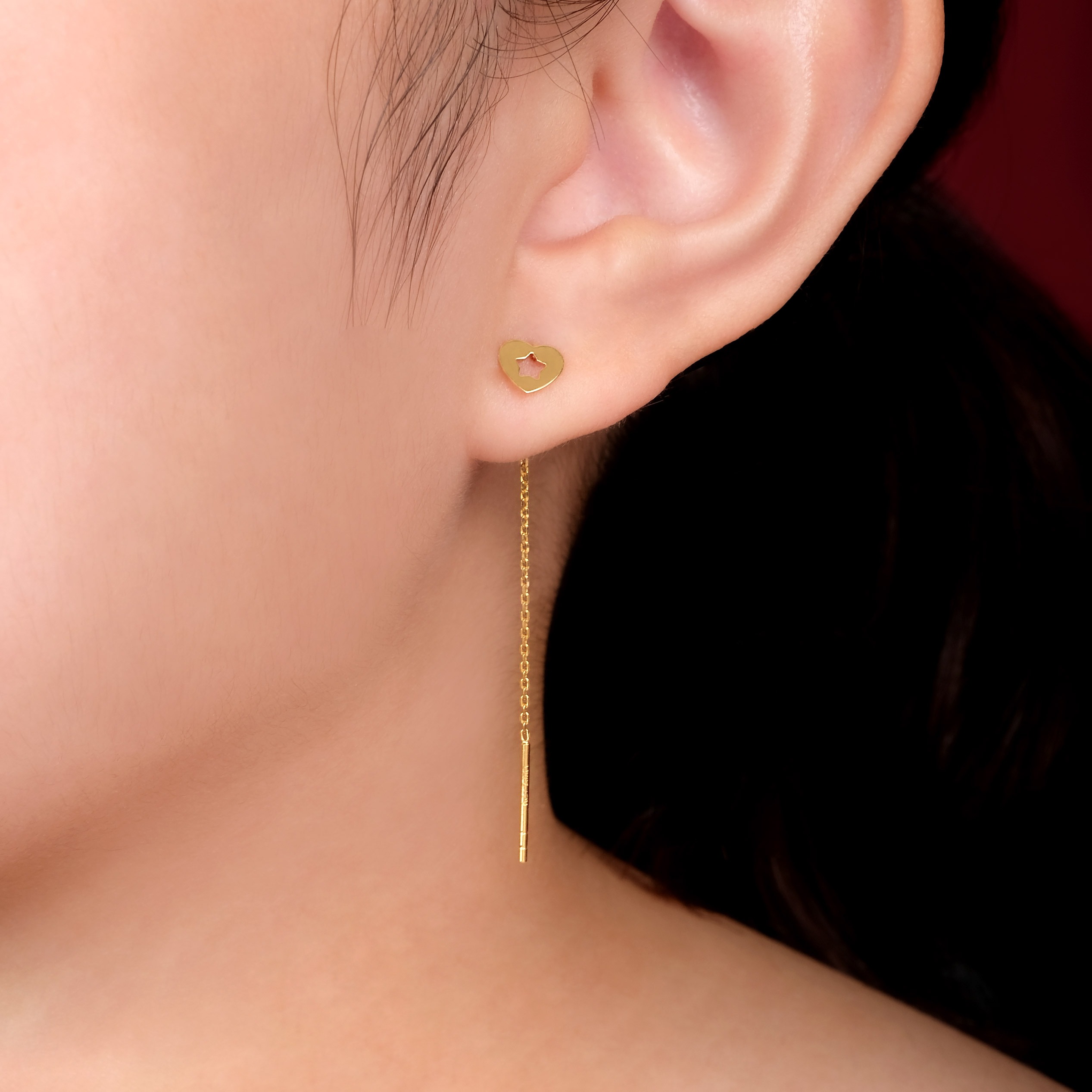 Heart thread through drop earrings