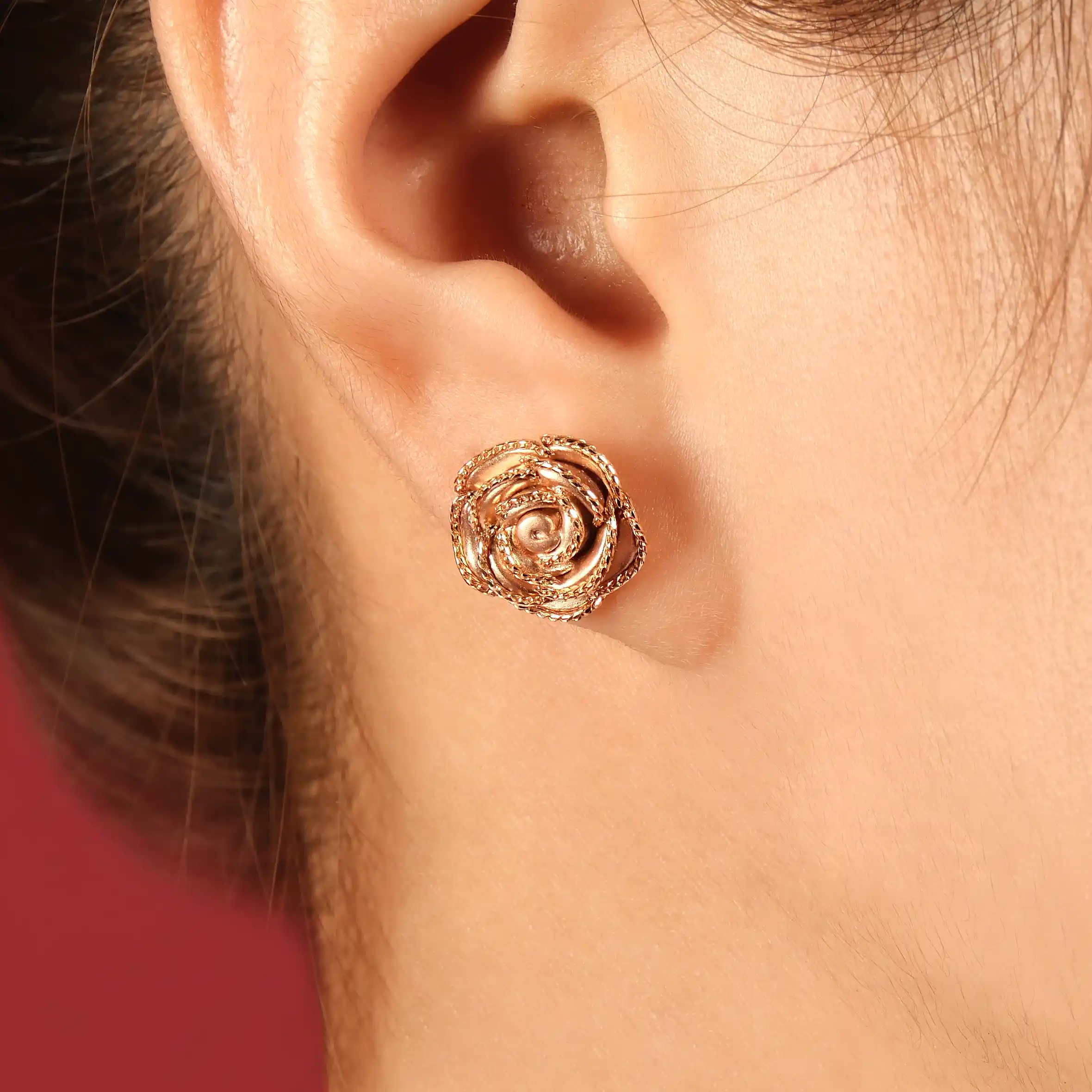 18 karat Italian gold flower stud earrings by Oro China Jewelry.