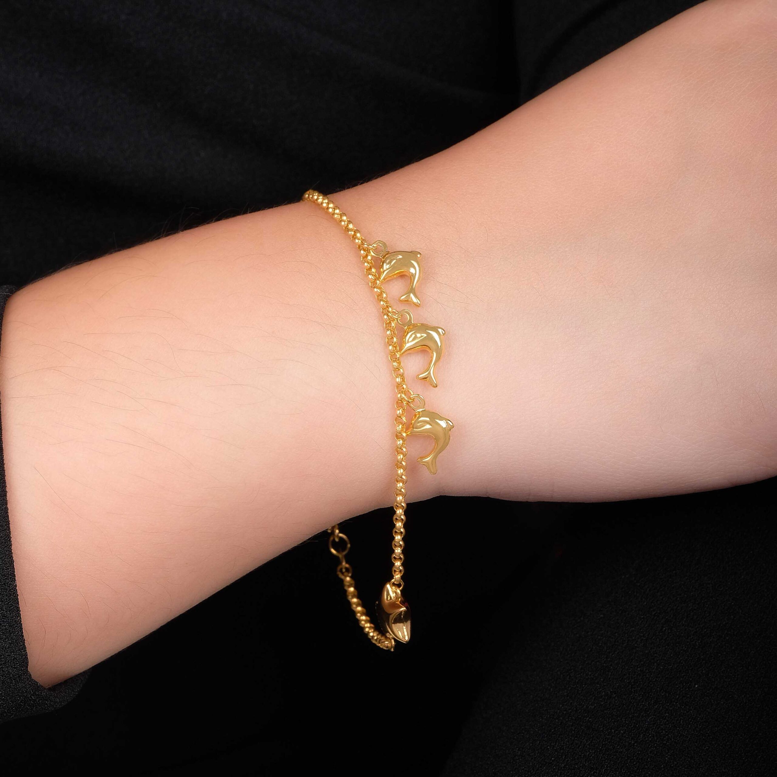Chain bracelet with three hearts, three dolphins, and one star charms