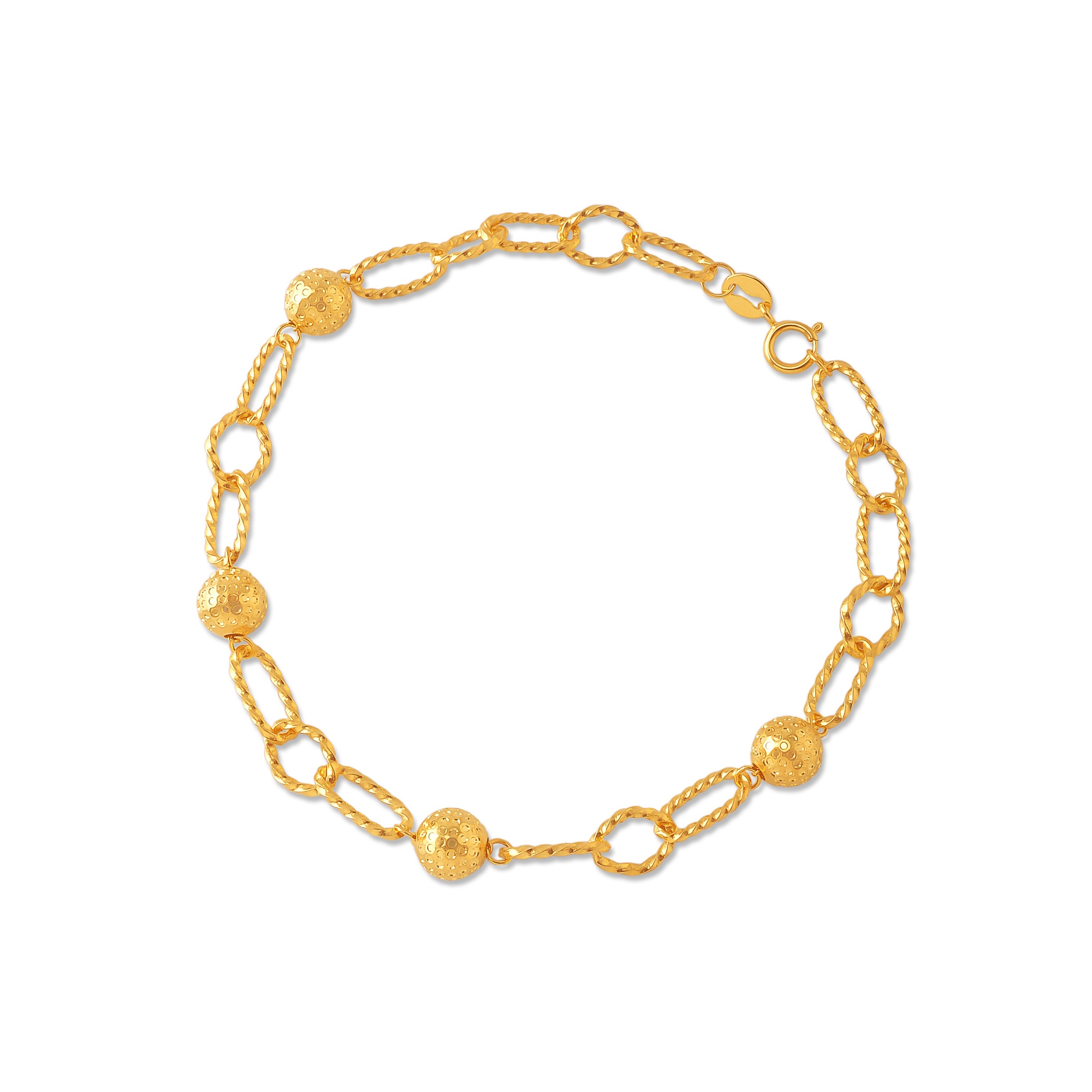 18 karat Chinese gold bracelet featuring dangling prosperity coin charms by Oro China Jewelry.