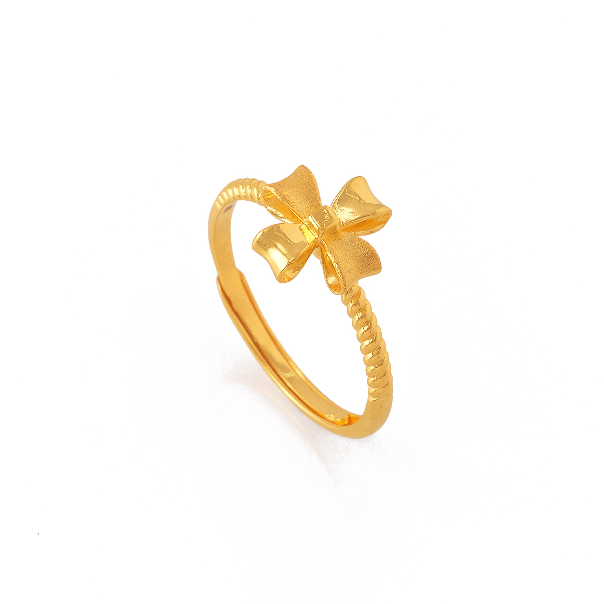 18 karat Chinese gold ring with interlaced polished bands and diamond-cut accents by Oro China Jewelry.
