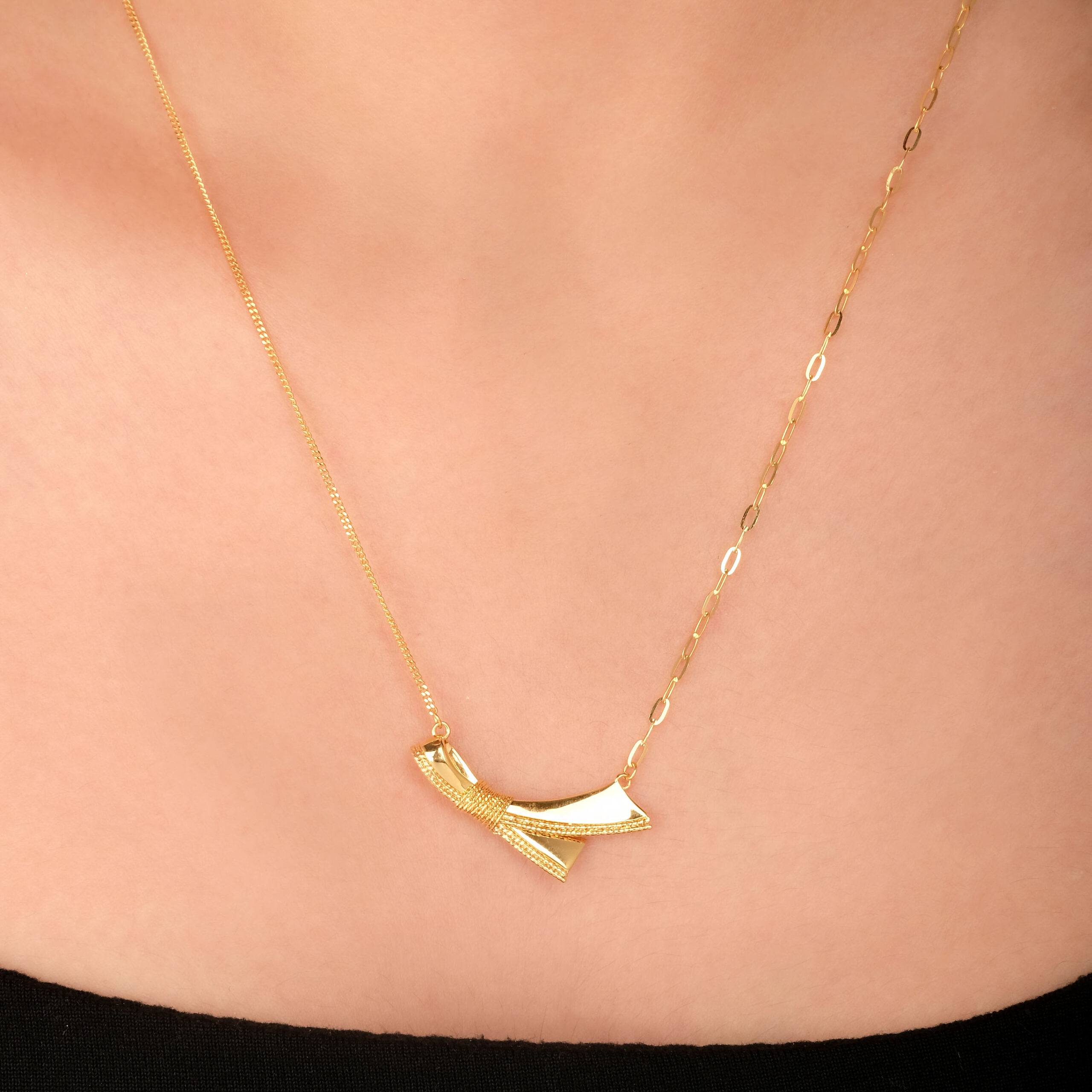 18 karat Chinese gold layered ribbon-style necklace with textured finish by Oro China Jewelry.