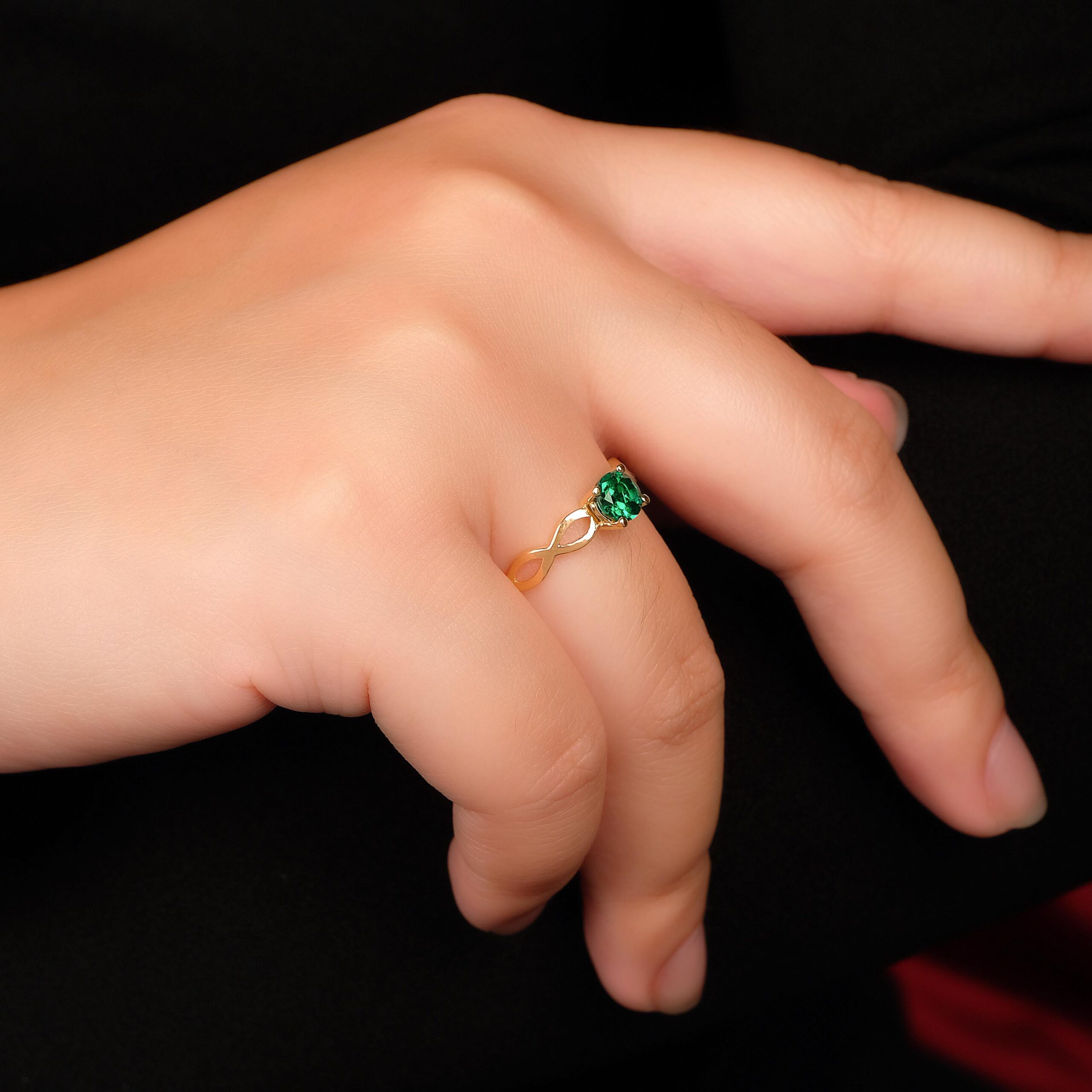 Emerald solitaire ring with crisscross band