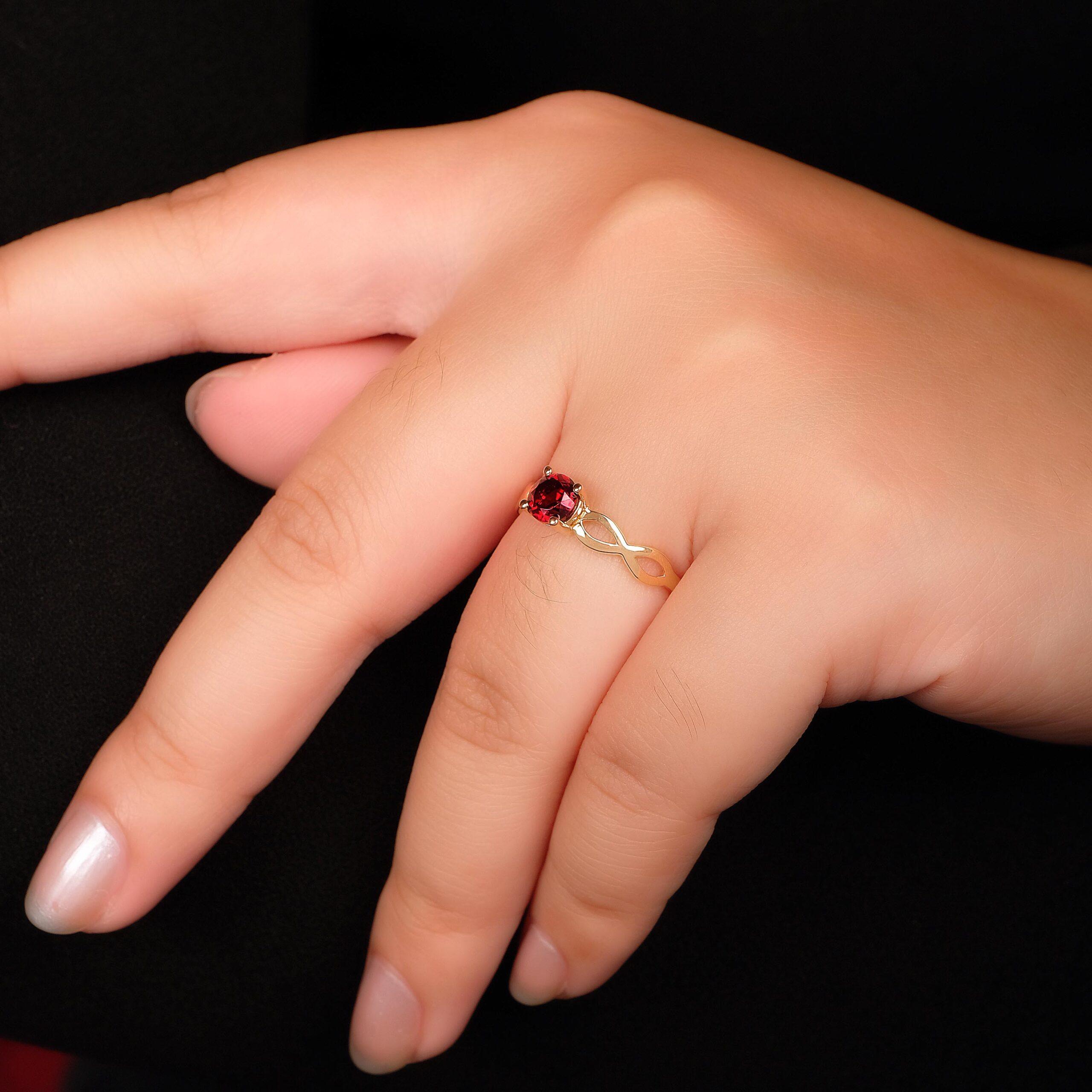 Garnet solitaire ring with crisscross band