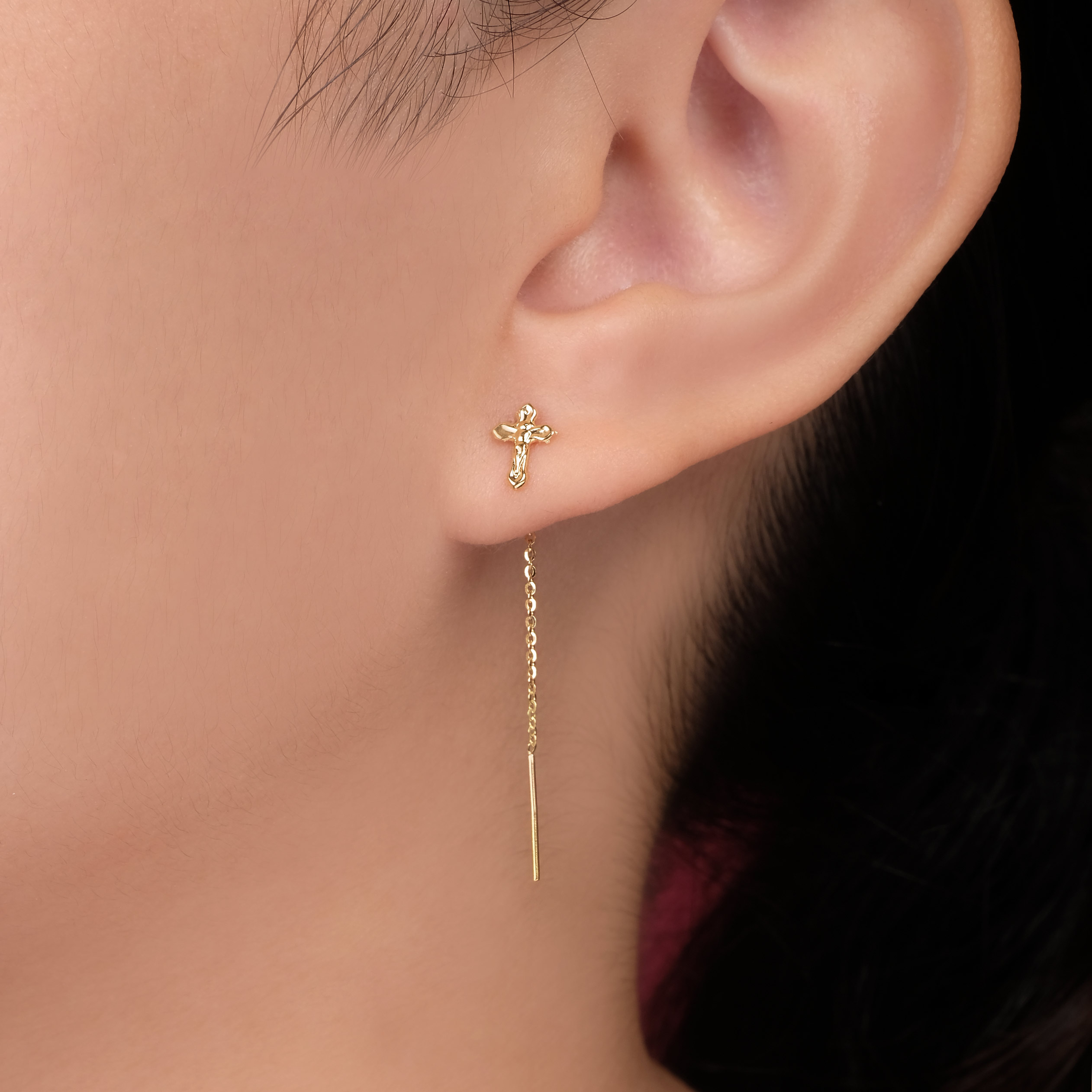 Cross thread through drop earrings